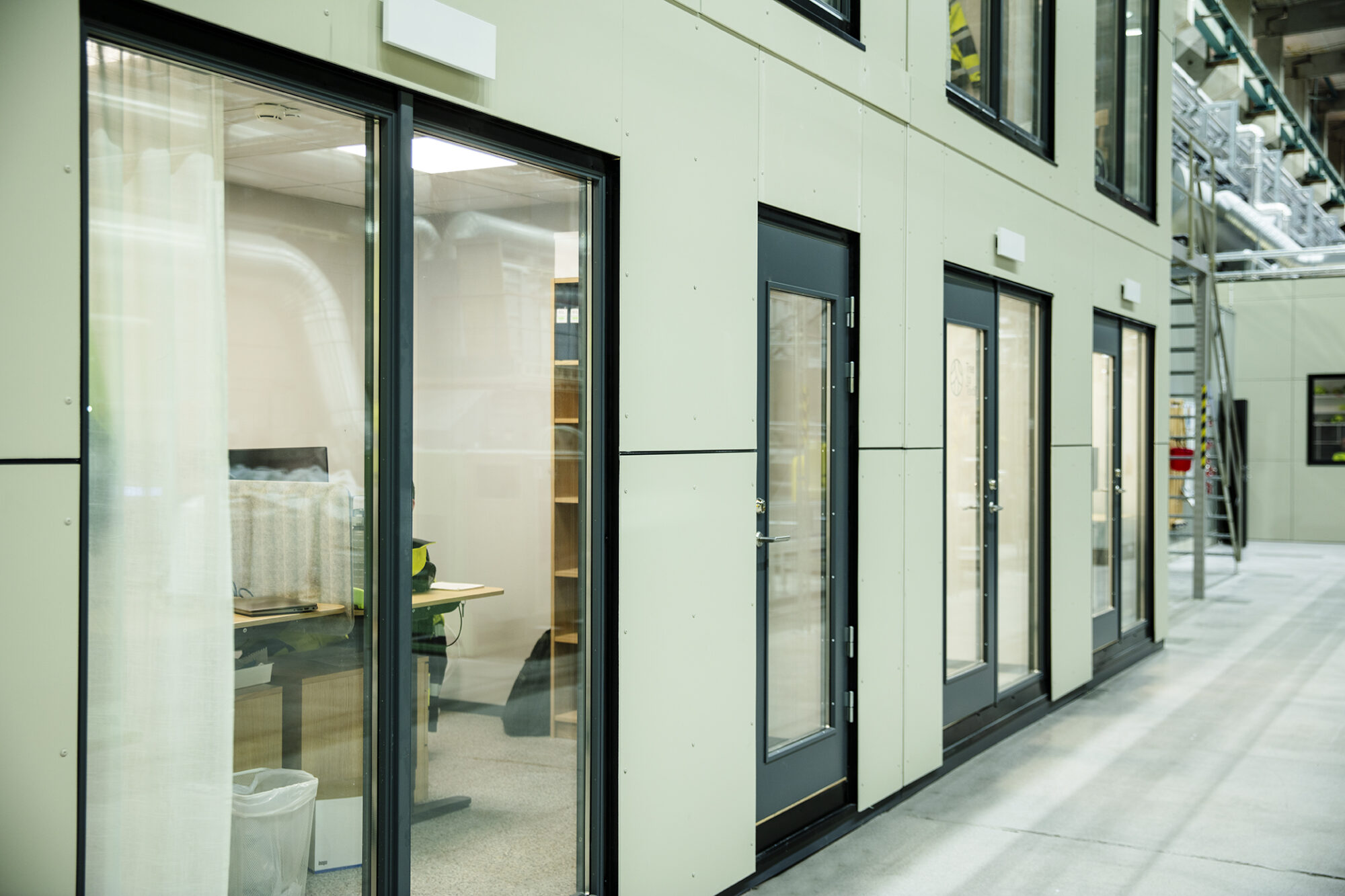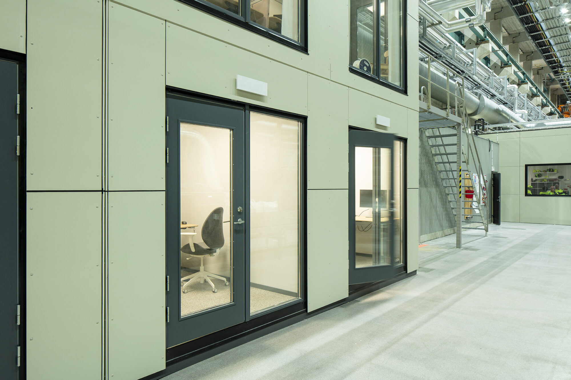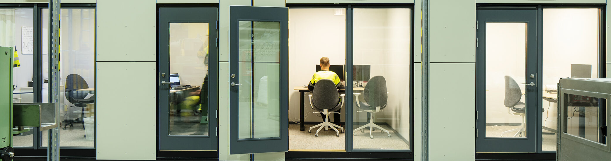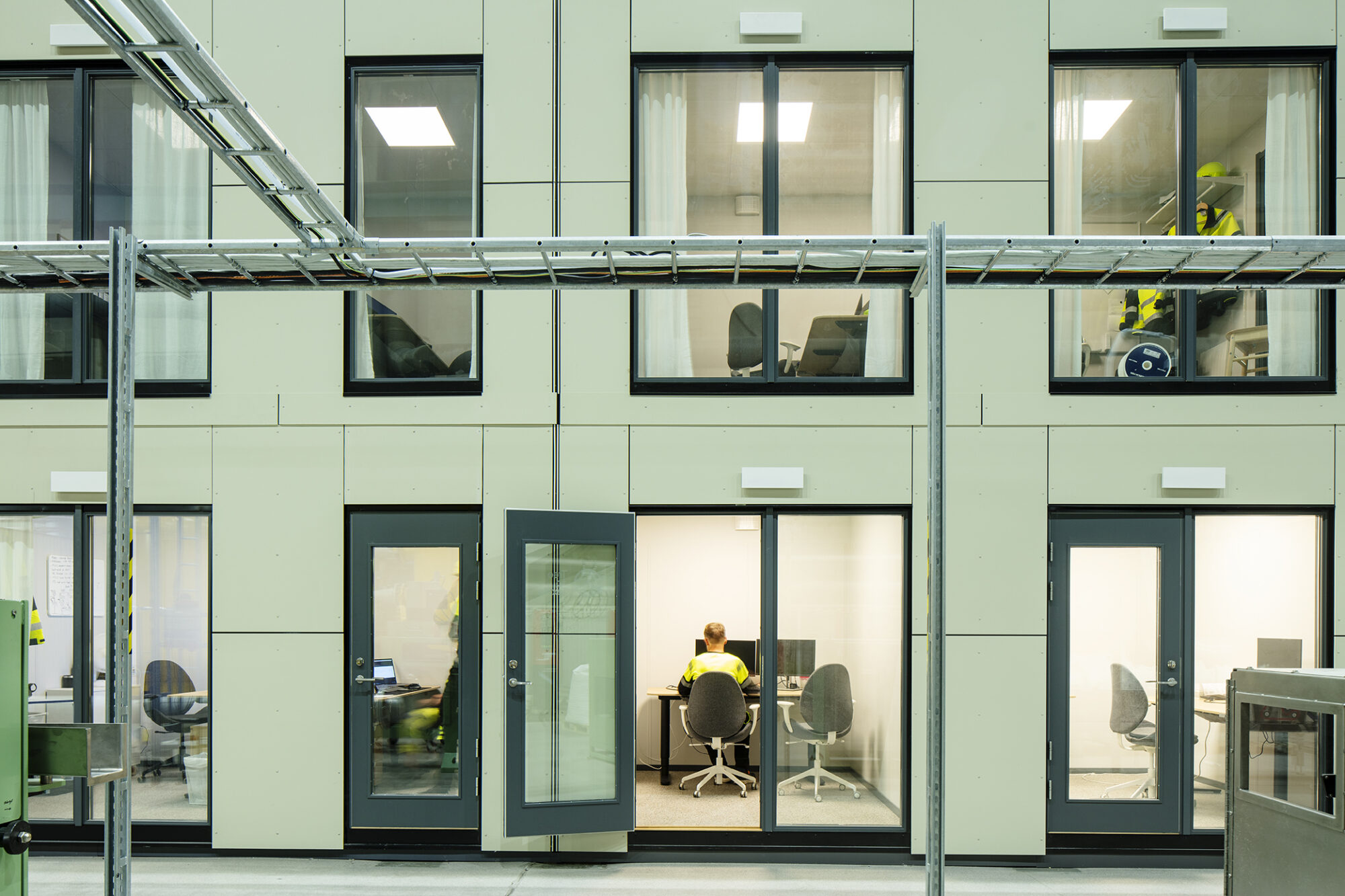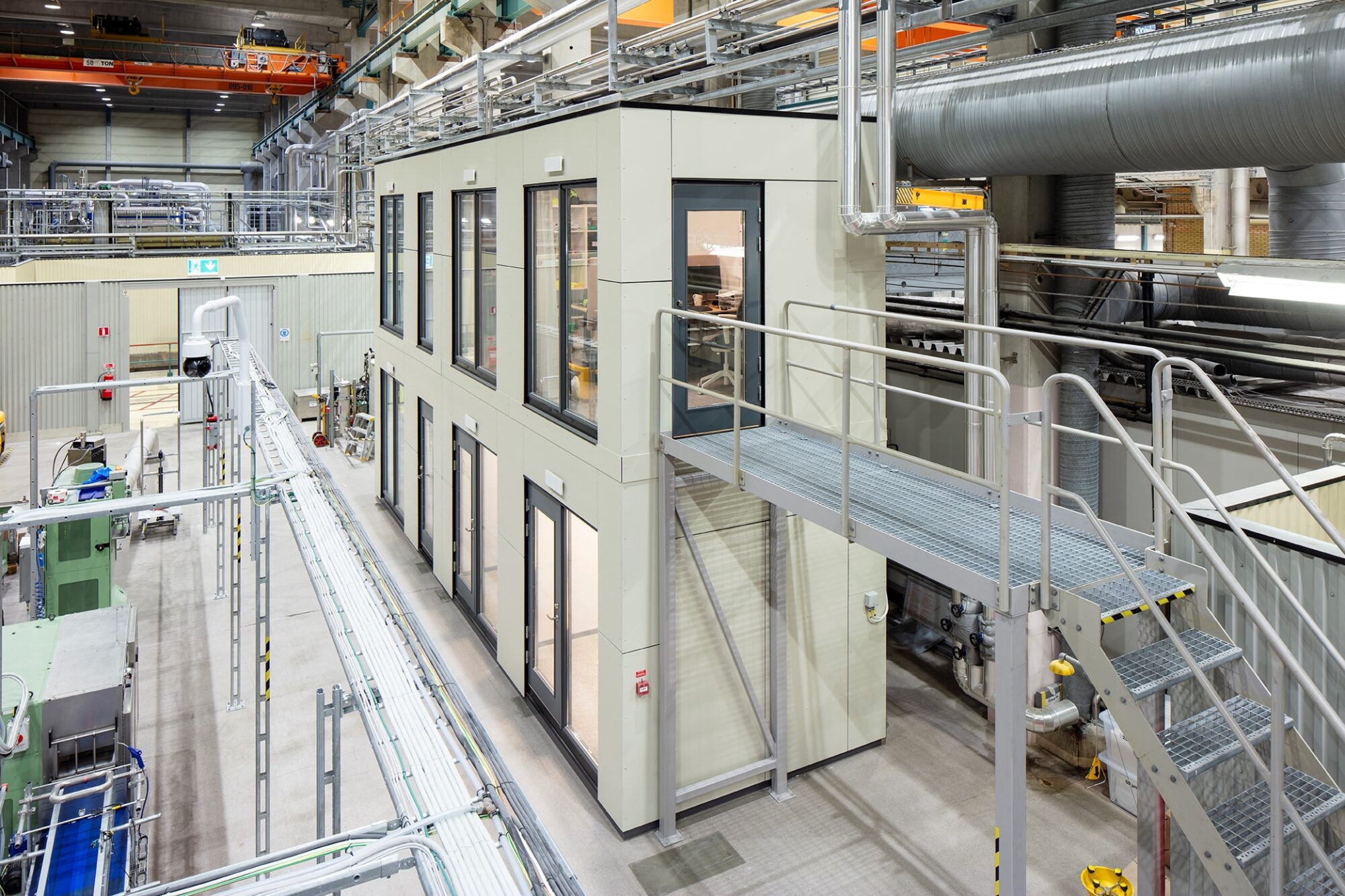 Det finns egentligen ingen bättre plats för ett kontor att vara placerat än i hjärtat av företagets verksamhet, mitt i produktionen. Våra Indoormoduler är ljudisolerade för att skapa en bra arbetsplats trots sin placering och de kan monteras i både ett och två plan.