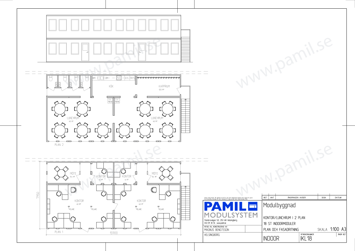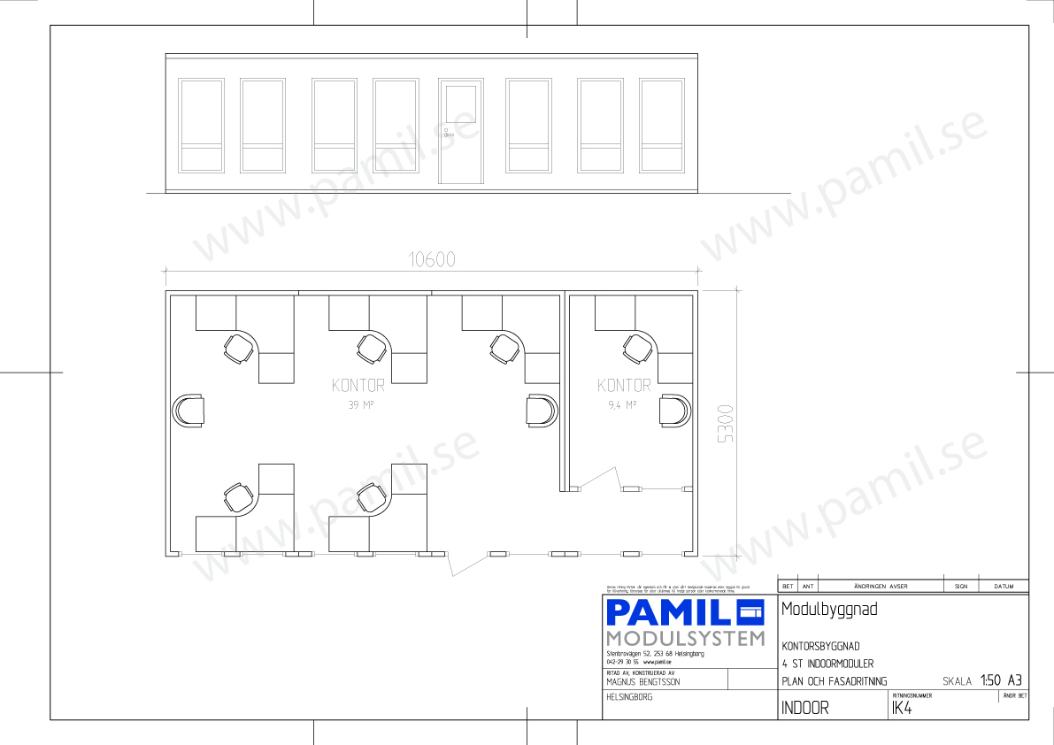 Det finns egentligen ingen bättre plats för ett kontor att vara placerat än i hjärtat av företagets verksamhet, mitt i produktionen. Våra Indoormoduler är ljudisolerade för att skapa en bra arbetsplats trots sin placering och de kan monteras i både ett och två plan.